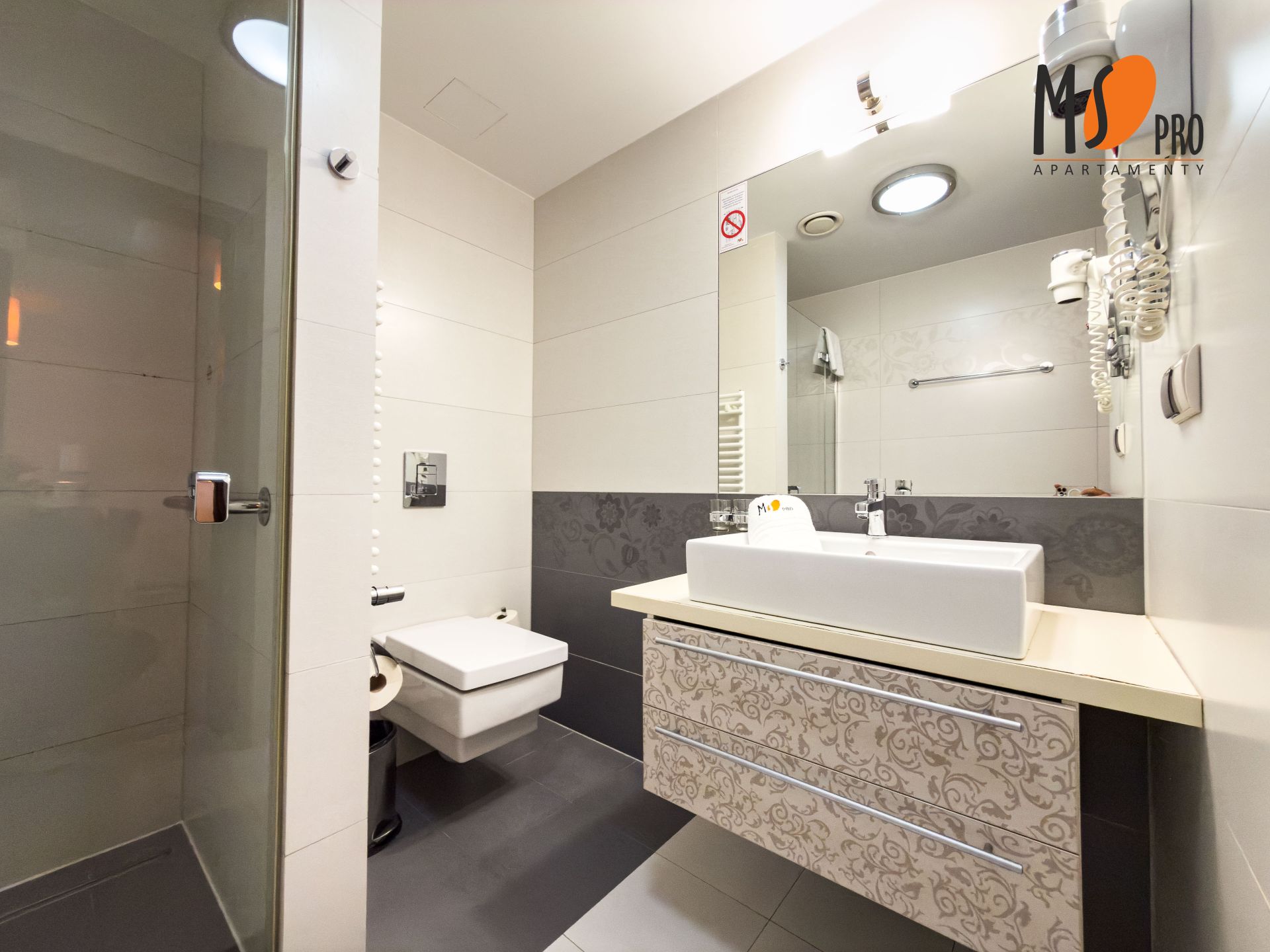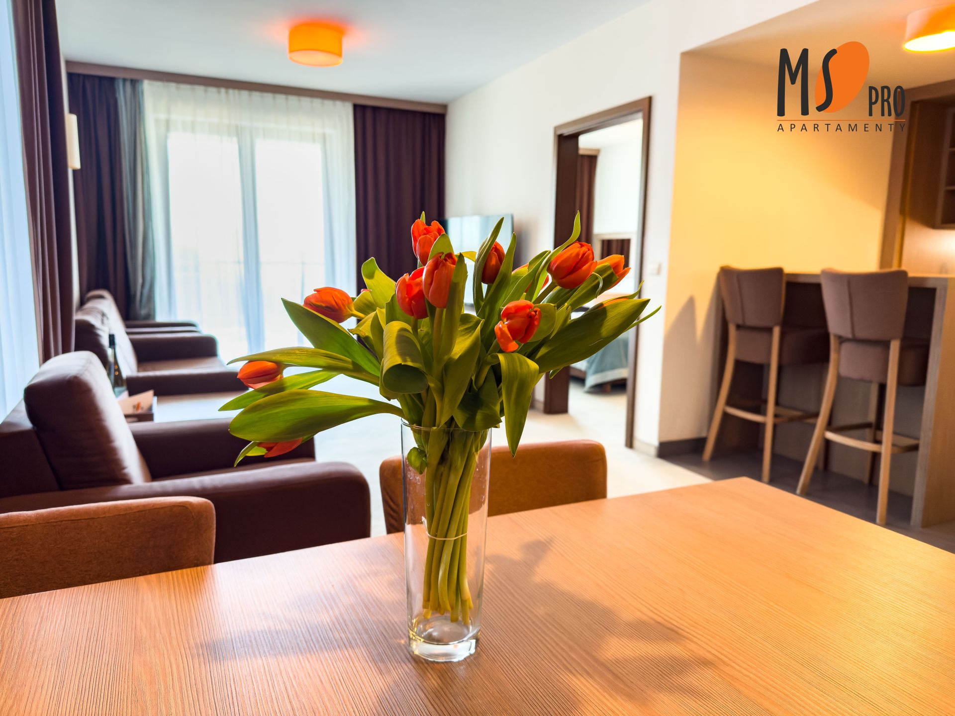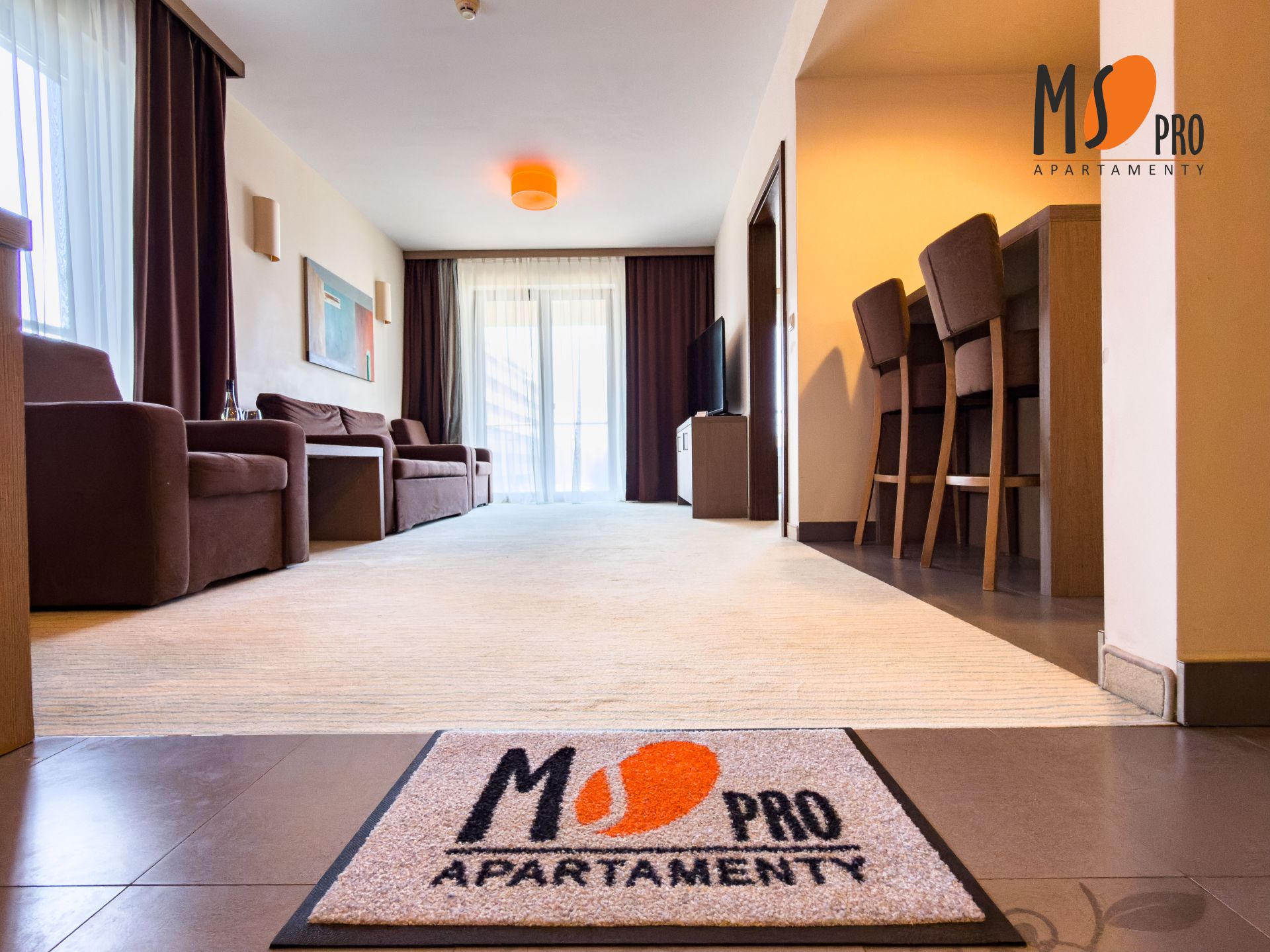 Apartament znajduje się na pierwszym piętrze budynku hotelowego, od strony północno-zachodniej, co zapewni mu optymalne nasłonecznienie przez większość dnia, a duży balkon będzie świetnym rozwiązaniem na spędzenie wolnego czasu przy filiżance kawy czy lampce wina.
