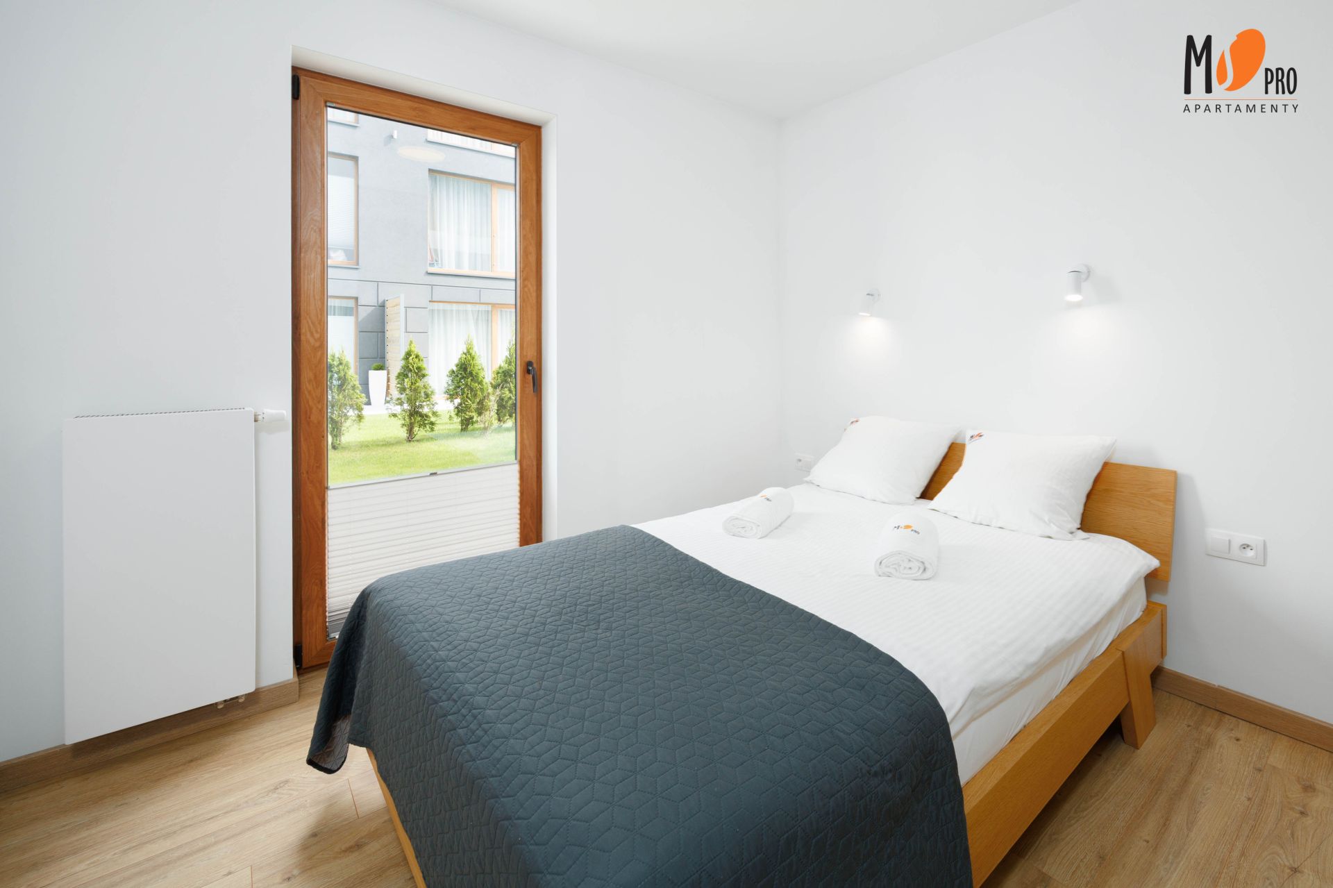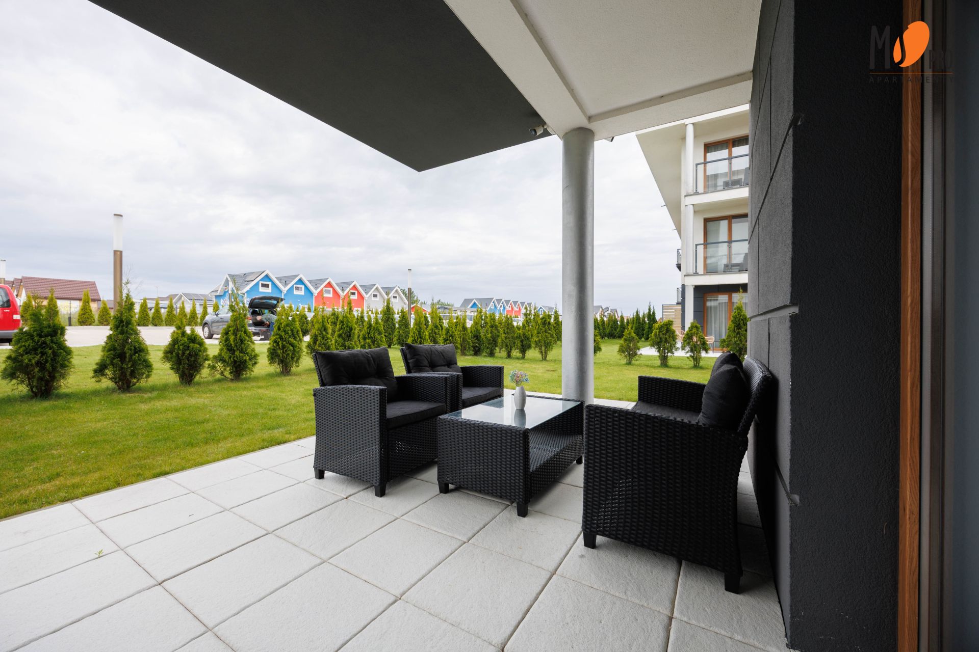 Sam apartament Premium 4 znajduje się w budynku D na parterze z dużym tarasem okalającym go z dwóch stron. Jest to pięknie wykończony lokal z uwzględnieniem wszystkich aspektów wpływających na udany pobyt gości. Dwie osobne sypialnie są wyposażone w niezwykle wygodne łóżka będące gwarancją spokojnego snu.