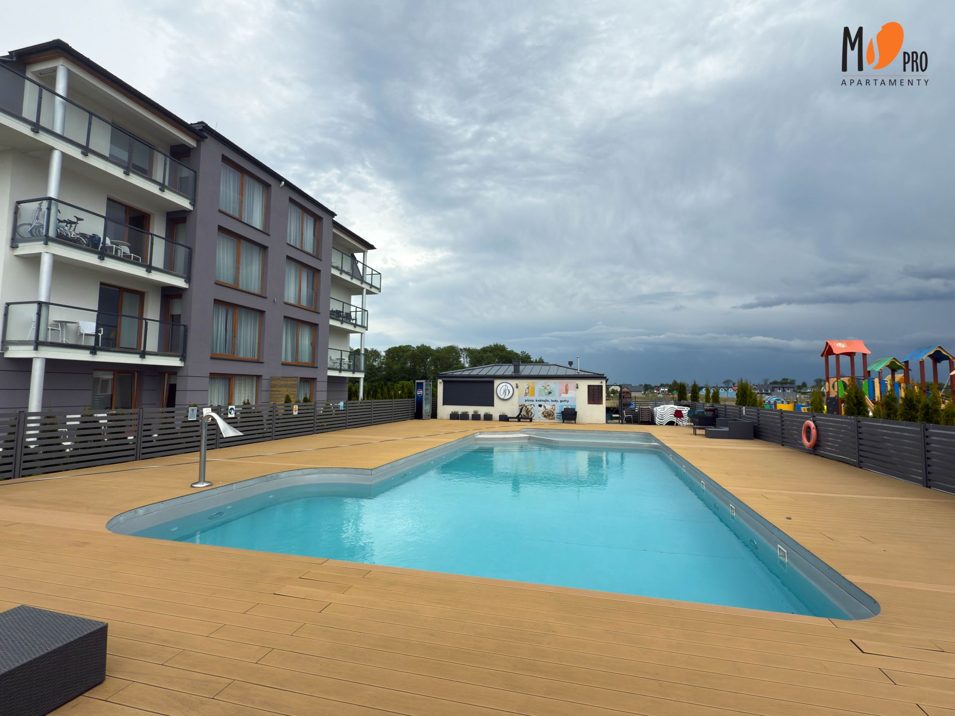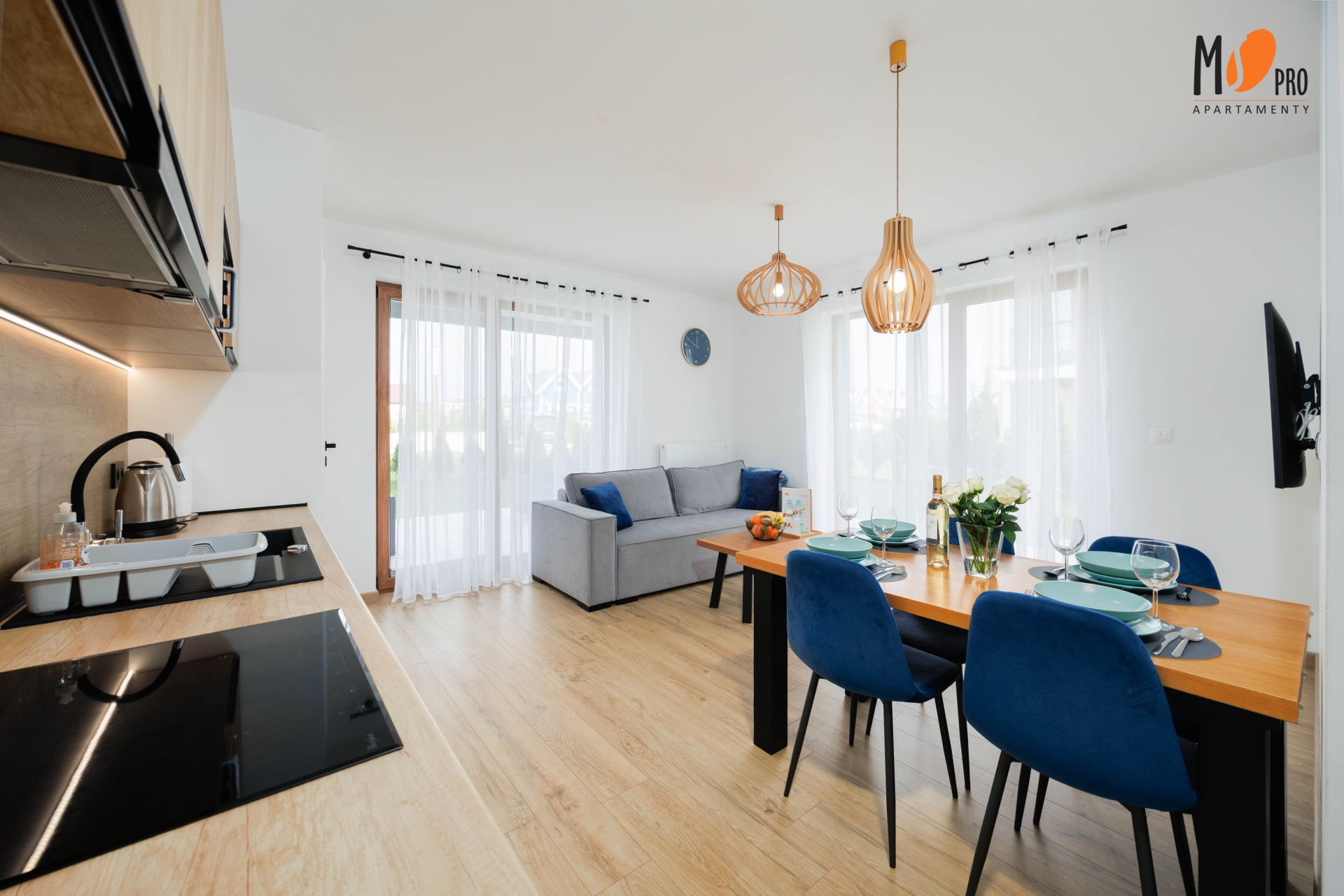 Apartament znajduje się w najnowszym obiekcie BLU APARTMENTS w Sarbinowie, w spokojnej i niezwykle cenionej przez turystów miejscowości skąd jest niespełna 650 metrów do pięknej plaży. Cały obiekt wykonany jest w wysokim standardzie wykończenia ze zwróceniem uwagi projektanta na najdrobniejsze szczegóły w trosce o gości i ich komfortowe samopoczucie. Dodatkową zaletą osiedla jest jego kameralny klimat wypełniony mnóstwem zieleni i kolorowych kwiatów. Ponad to pomiędzy budynkami znajduje się przestronny teren rekreacyjny z placem zabaw oraz dmuchanymi zjeżdżalniami, a całości dopełnia profesjonalne mini boisko typu "Orlik", na którym znajdą radość fani koszykówki czy piłki nożnej.