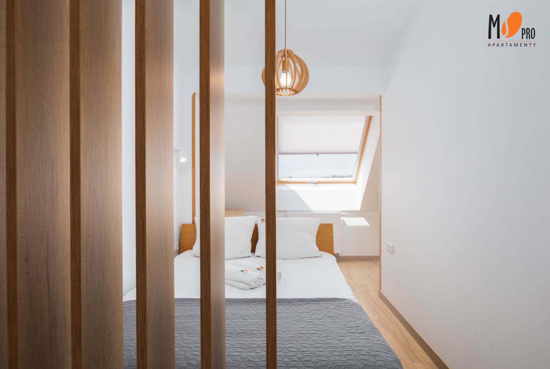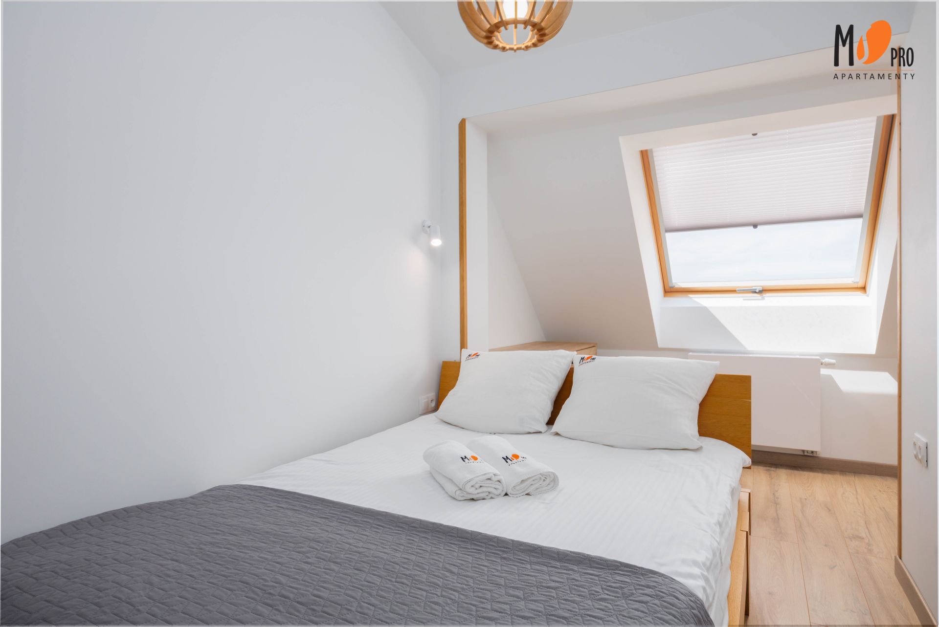Sam apartament Premium 6 znajduje się w budynku D na trzecim piętrze. Jest to pięknie wykończony lokal z uwzględnieniem wszystkich aspektów wpływających na udany pobyt gości. Sypialnia jest przedzielona nowoczesnym i stylowym przepierzeniem od strony salonu, wyposażona w niezwykle wygodne łóżko będące gwarancją spokojnego snu.